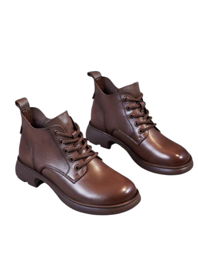 Женская обувь Johnature. Короткие ботинки из натуральной кожи. Повседневные однотонные универсальные ботинки на шнуровке. — купить товар онлайн с бесплатной доставкой по всему миру!