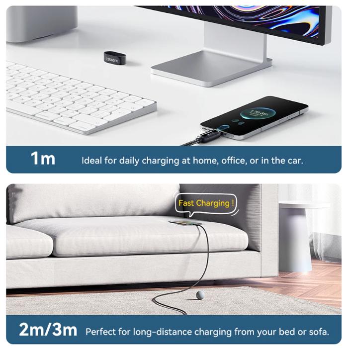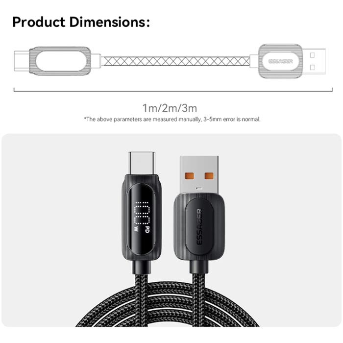Essager 7A USB Type C кабель 100 Вт быстрая зарядка USB кабель для Xiaomi Huawei Mate 60 Samsung Vivo Honor Realme Oneplus Data Wire