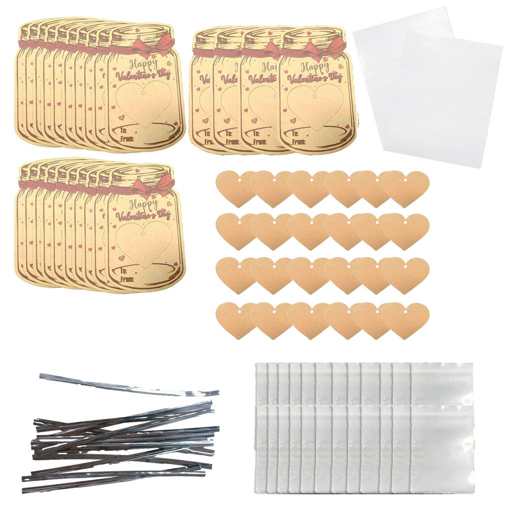 24 набора креативных подарочных карт на День Святого Валентина своими руками: В набор входят 24 карточки в форме банок, 24 прозрачных запечатанных пакета и 24 двусторонних клея.