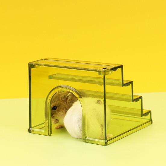 Расширить пространство деятельности: Акриловое нескользящее укрытие для лестницы 2-в-1, нескользящая и просторная конструкция для хомяков, золотых медведей и белок, способствующая исследованию и гнездованию, безопасный материал без запаха для комфорта и безопасности домашних животных.