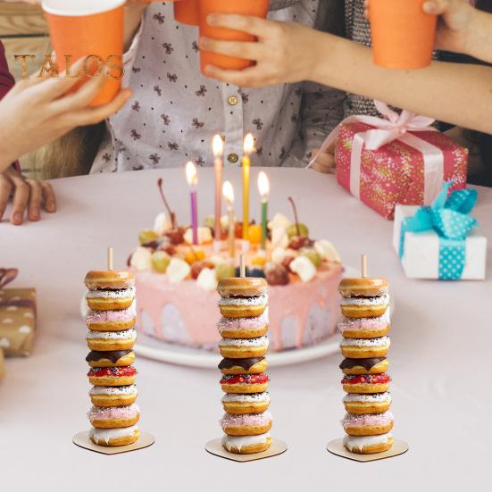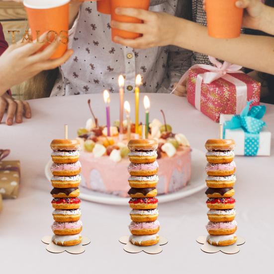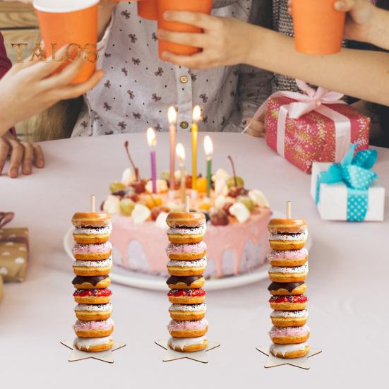 Стабильная конструкция с широкой базой: Каждая подставка для пончиков имеет широкое основание, предотвращающее наклон и обеспечивающее устойчивость, обеспечивая безопасную платформу, на которой можно без опасений демонстрировать свои вкусные угощения.