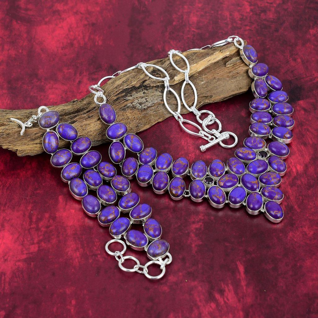 Ювелирные изделия из цельного серебра 925 пробы с фиолетовым медно-бирюзовым оттенком, украшения ручной работы, великолепный комплект из ожерелья и браслета для нее