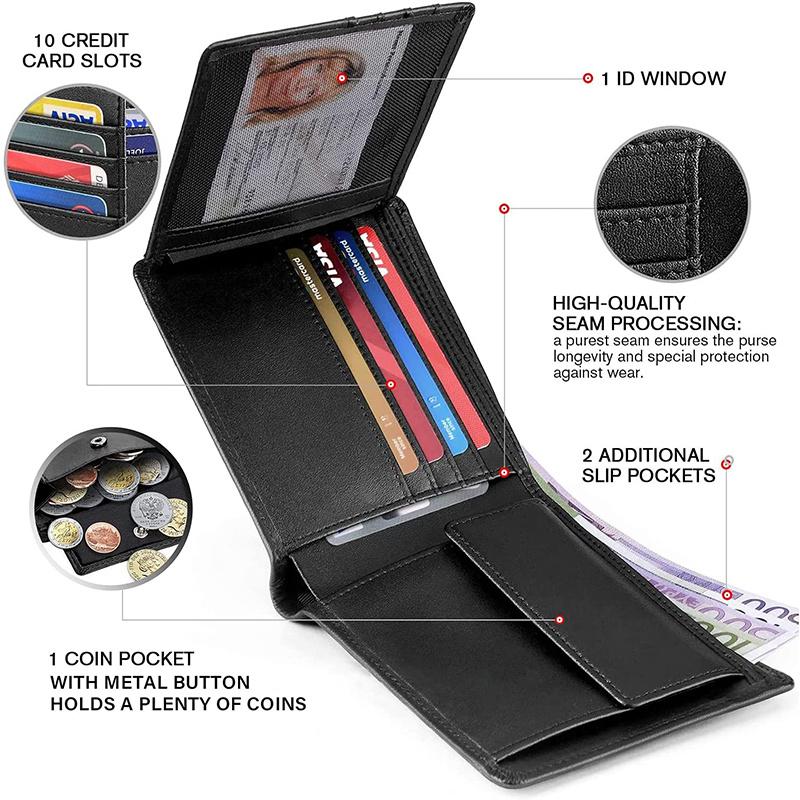 100% натуральная кожа, блокирующий тонкий тройной мужской кошелек с карманом для монет и окошком для удостоверения личности, минималистичный кошелек для мужчин