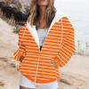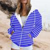 Женская толстовка с длинными рукавами и полосатым принтом, куртка с длинными рукавами и карманами, на молнии, пальто с капюшоном