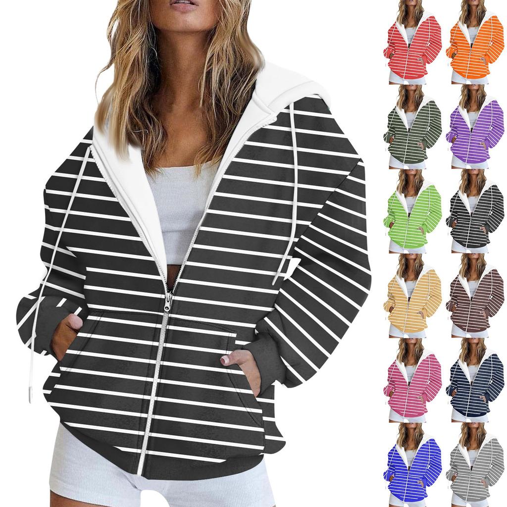 Женская толстовка с длинными рукавами и полосатым принтом, куртка с длинными рукавами и карманами, на молнии, пальто с капюшоном — купить товар онлайн с бесплатной доставкой до всему миру!
