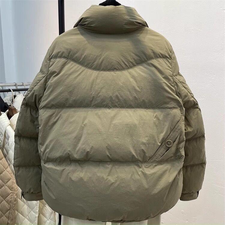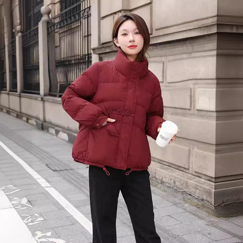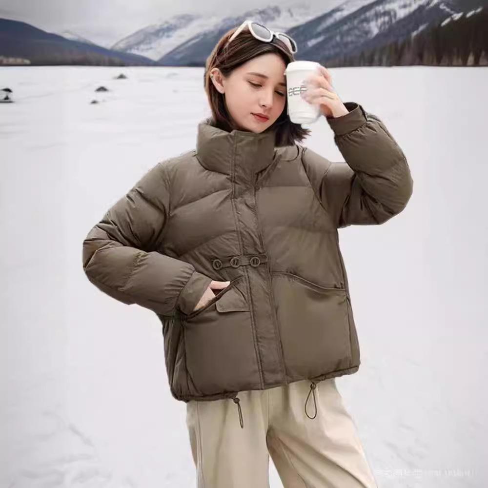 Легкая короткая куртка-пуховик для женщин с воротником-стойкой, три пуговицы, свободное повседневное пальто на белом утином пуху на осень-зиму