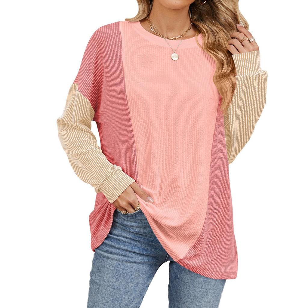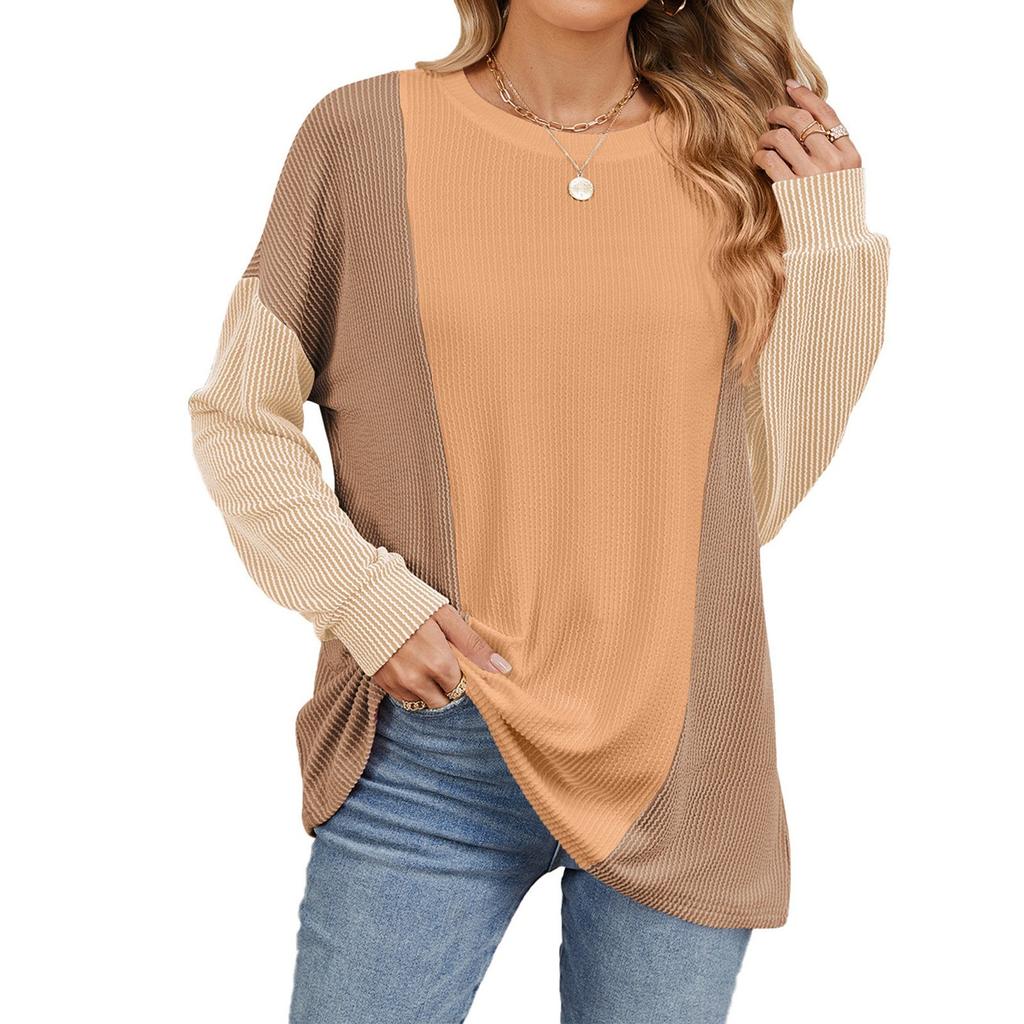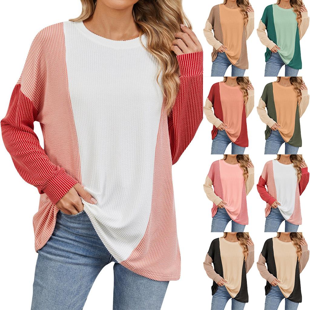 Женская мода с круглым вырезом, с длинным рукавом, повседневная футболка, свитшот, топ