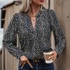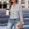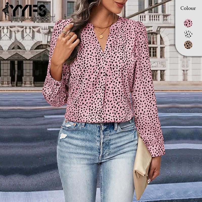 YYFS Женская мода повседневная весна осень леопардовый принт длинный рукав V-образный вырез блузки и рубашки