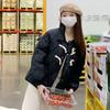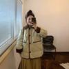 Милая и свежая куртка из корейского хлопка с роговыми пуговицами и ромбовидной сеткой и отложным воротником
