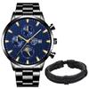 Мужские модные спортивные наручные часы класса люкс мужские деловые кварцевые часы из нержавеющей стали мужские повседневные часы с кожаным браслетом светящиеся часы