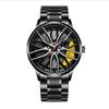 Автомобильные часы для мужчин, водонепроницаемые кварцевые наручные часы из нержавеющей стали, спортивные мужские часы с дизайном ступицы обода колеса автомобиля