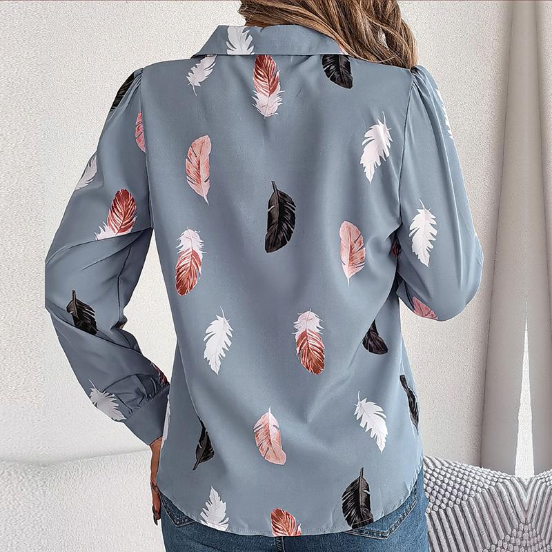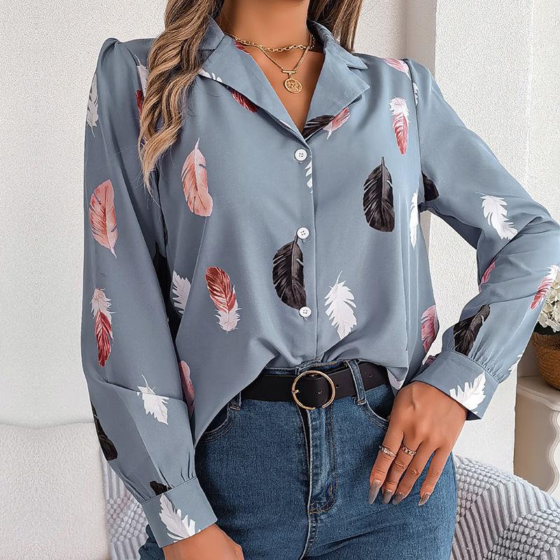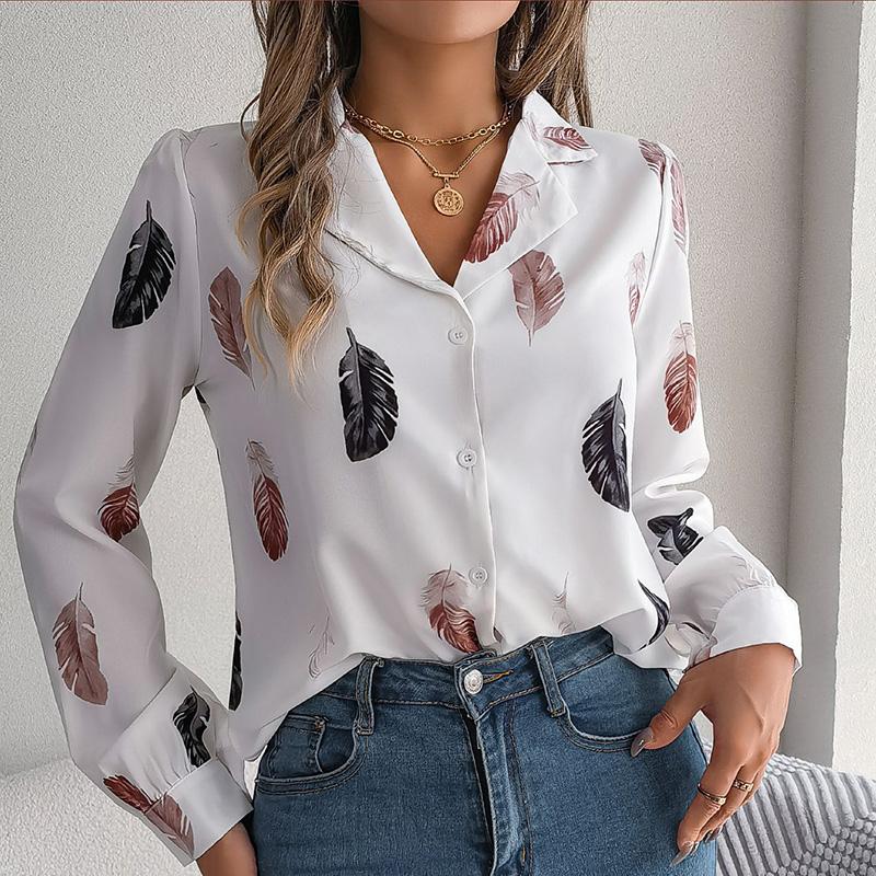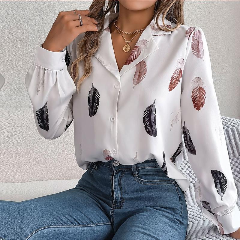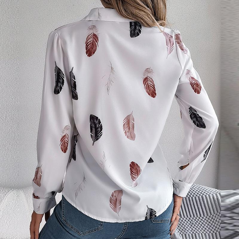Женский весенне-осенний темпераментный костюм с принтом перьев, рубашка с длинным рукавом, блузки с воротником