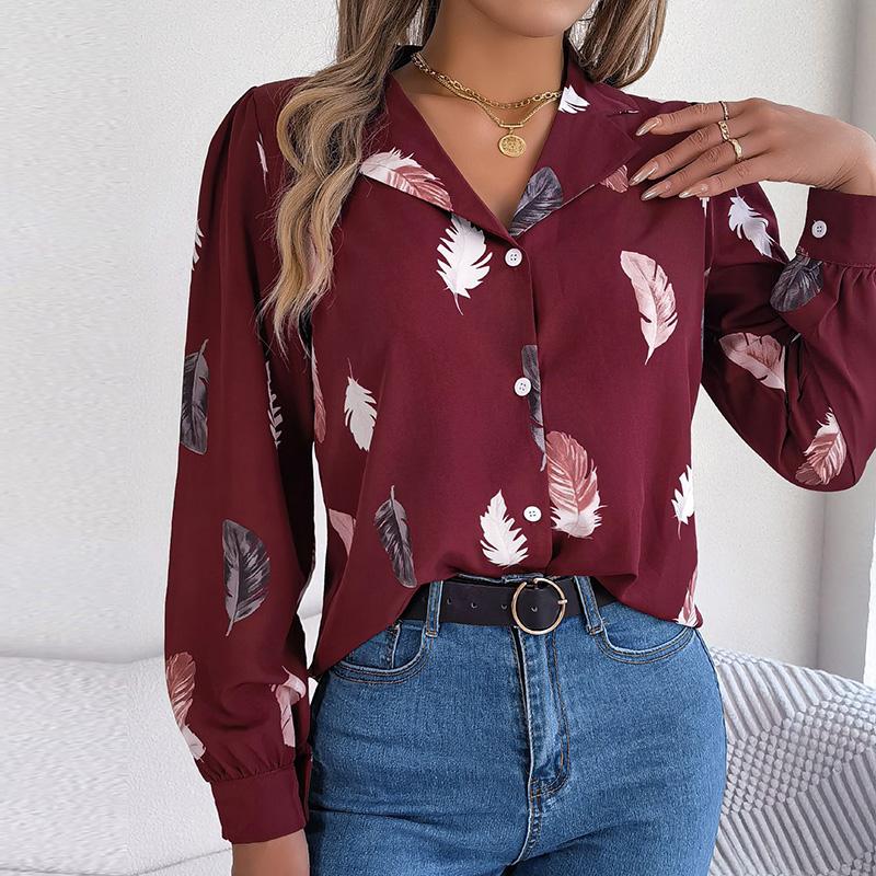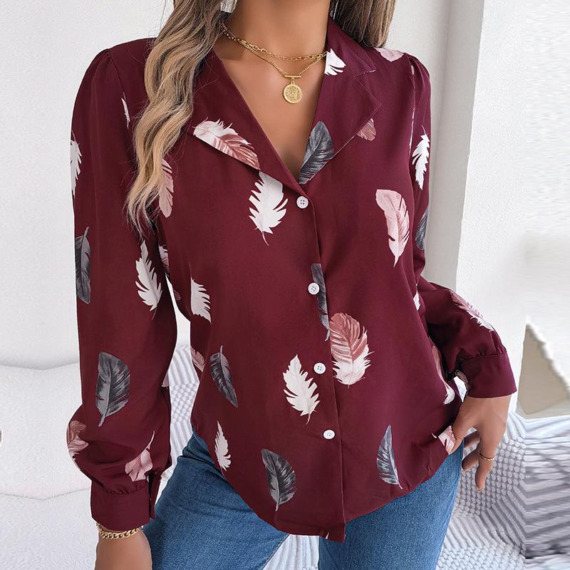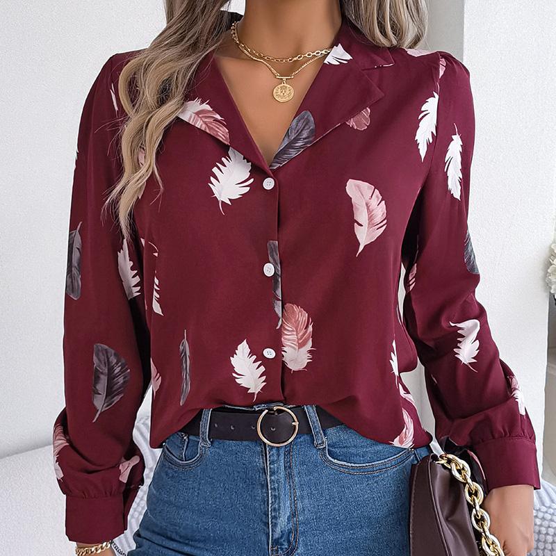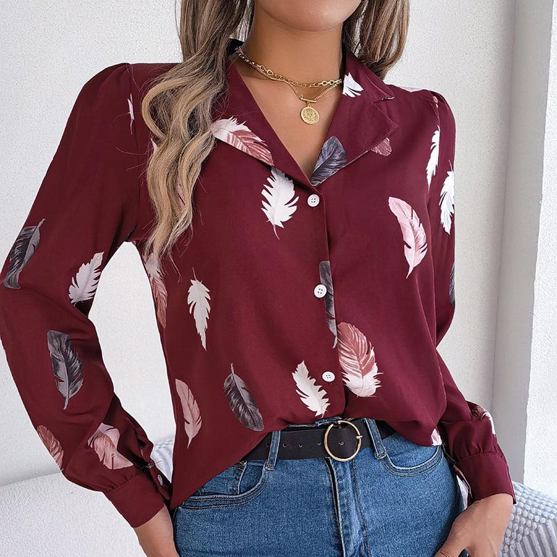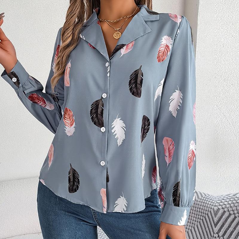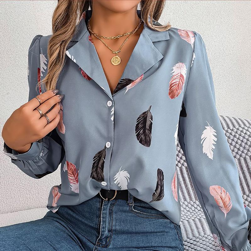 Женский весенне-осенний темпераментный костюм с принтом перьев, рубашка с длинным рукавом, блузки с воротником
