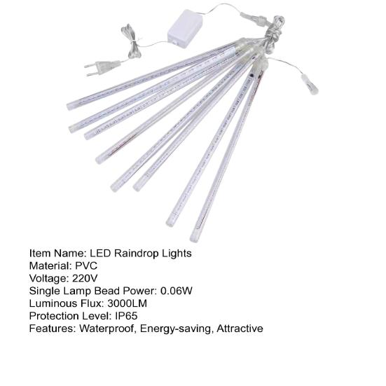 Изготовленный из высококачественного ПВХ-материала, наш светильник для падающего дождя имеет высокий коэффициент пропускания.. Он устойчив к коррозии, старению и водонепроницаем.. Подходит для рождественских украшений на открытом воздухе, создавая сказочную страну грез.