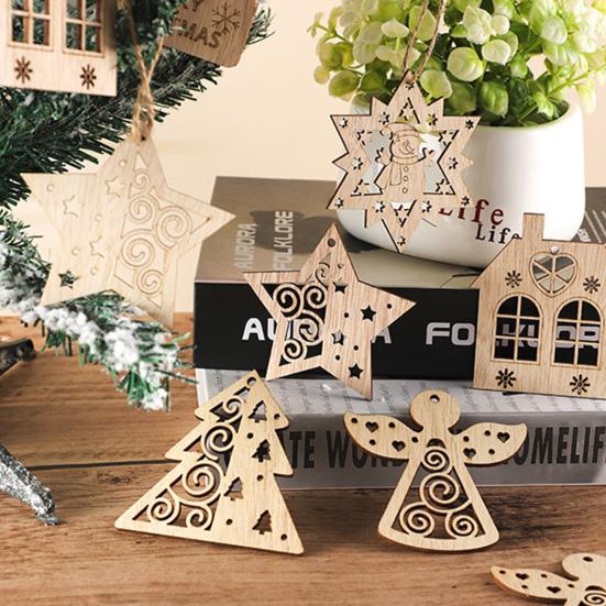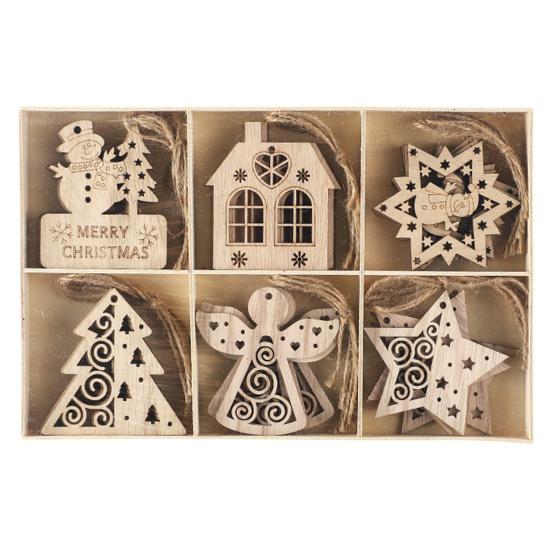 Изысканные и легкие деревянные подвесные украшения на елку, добавляющие праздничной атмосферы.