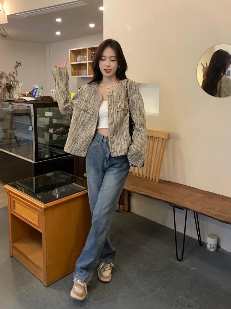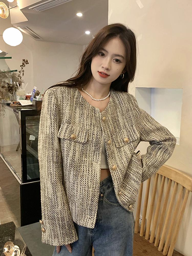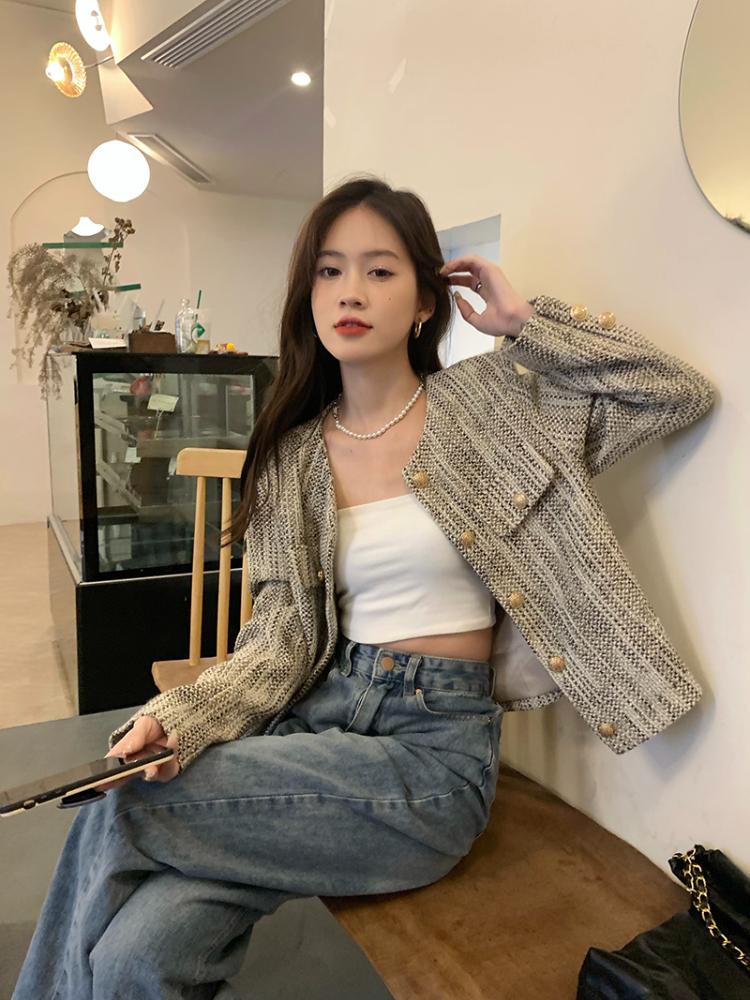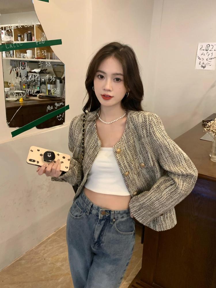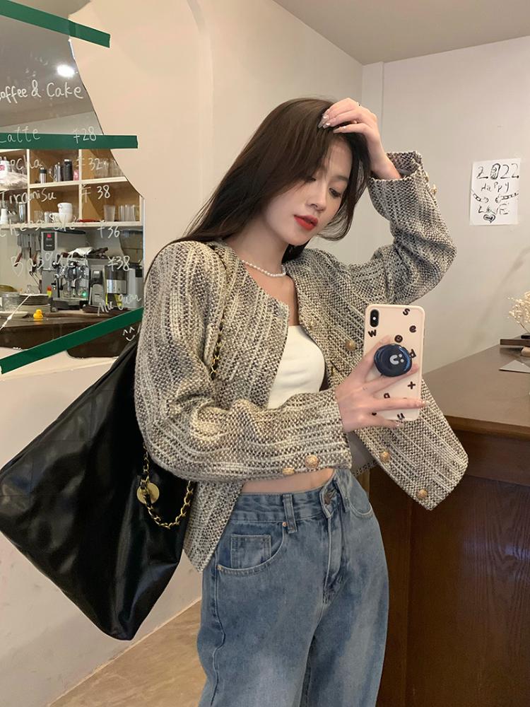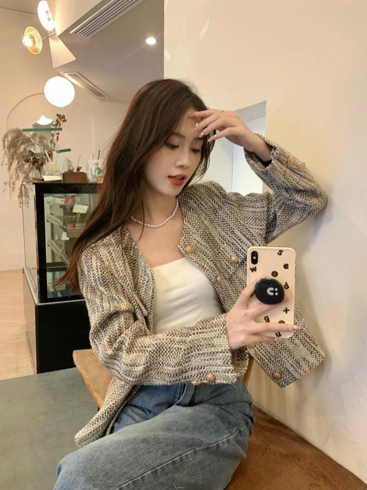 Французский элегантный короткий длинный рукав куртка женская осень зима новый винтажный дизайн тонкое пальто эстетическая мода вечеринка Ins кардиган топы