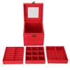 Деревянный красный однотонный трехслойный футляр для хранения ювелирных изделий