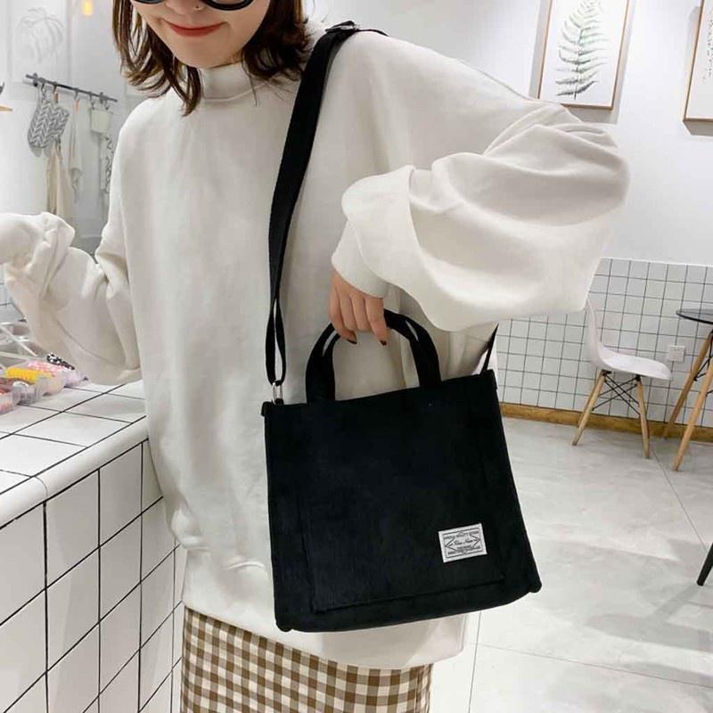 Женская вельветовая сумка через плечо на молнии, маленькая хлопковая парусиновая сумка, повседневная сумка через плечо, винтажные сумки-мессенджеры