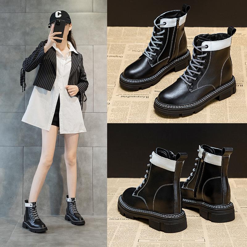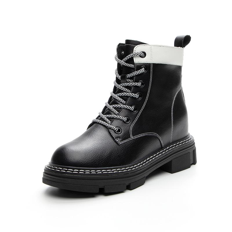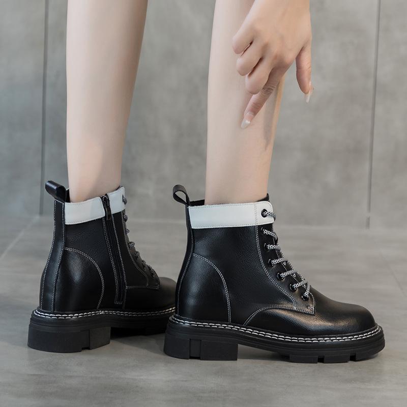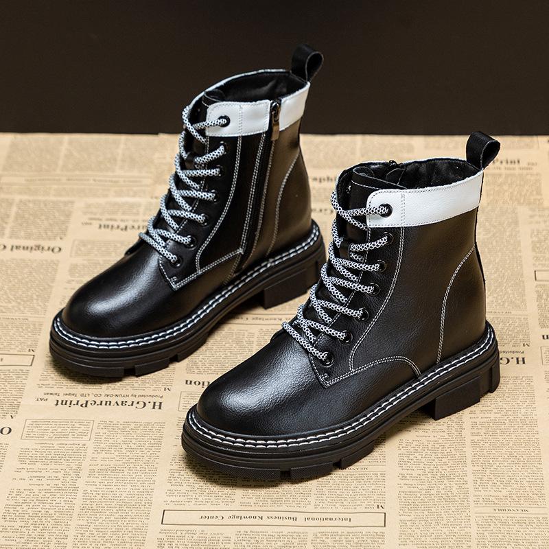 Осенние новые женские ботильоны из натуральной кожи с толстой подошвой, увеличивающей рост, со стелькой, повседневные, со шнуровкой, подходящие по цвету