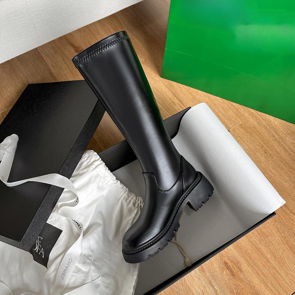 Осень и зима Новые круглые сапоги Frye Boots с толстой подошвой, тонкие эластичные сапоги, высокие рыцарские сапоги на небольшом толстом каблуке для женщин