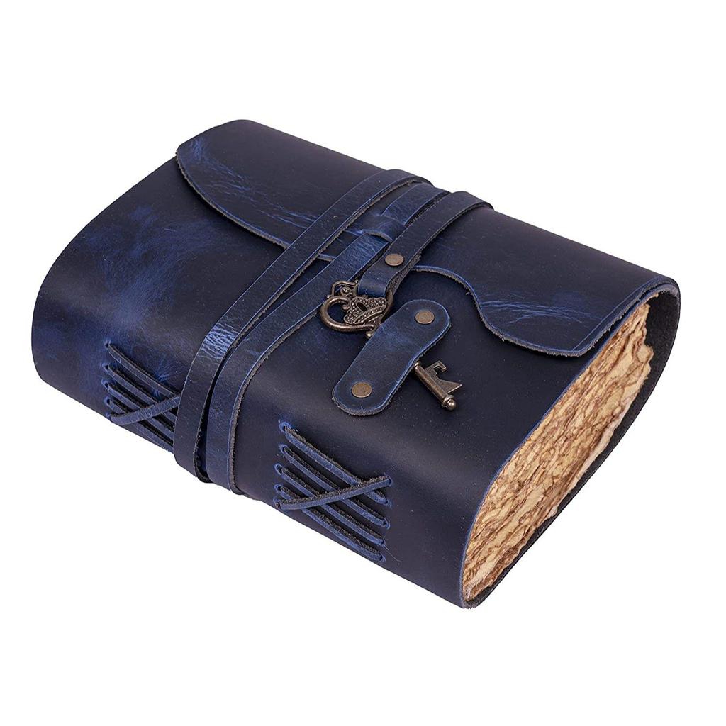 Винтажный кожаный дневник ручной работы - Старинные страницы ручной работы - Старинная застежка на ключ - Синий цвет. Размер 6x4 дюйма