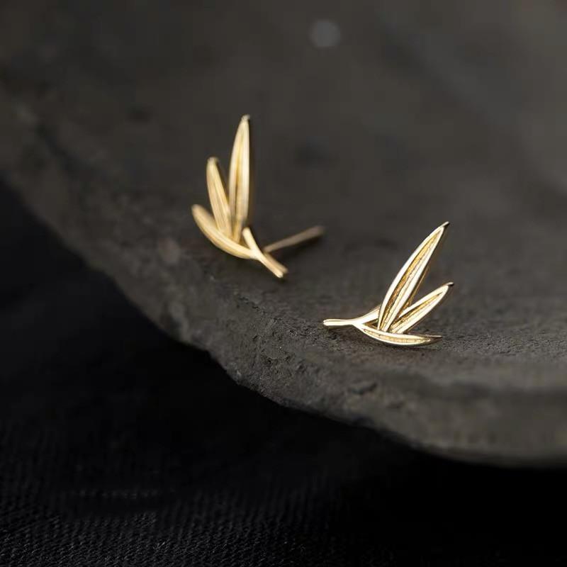 Серьги-гвоздики из стерлингового серебра S925 для женщин, простые, изящные, в стиле Мори, с элементом из бамбуковых листьев, универсальные и свежие серьги — купить товар онлайн с бесплатной доставкой по всему миру!