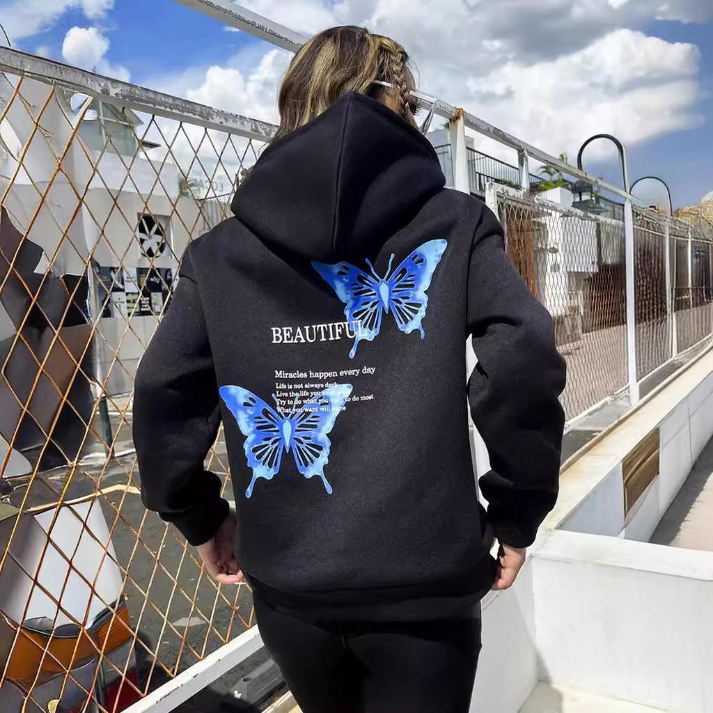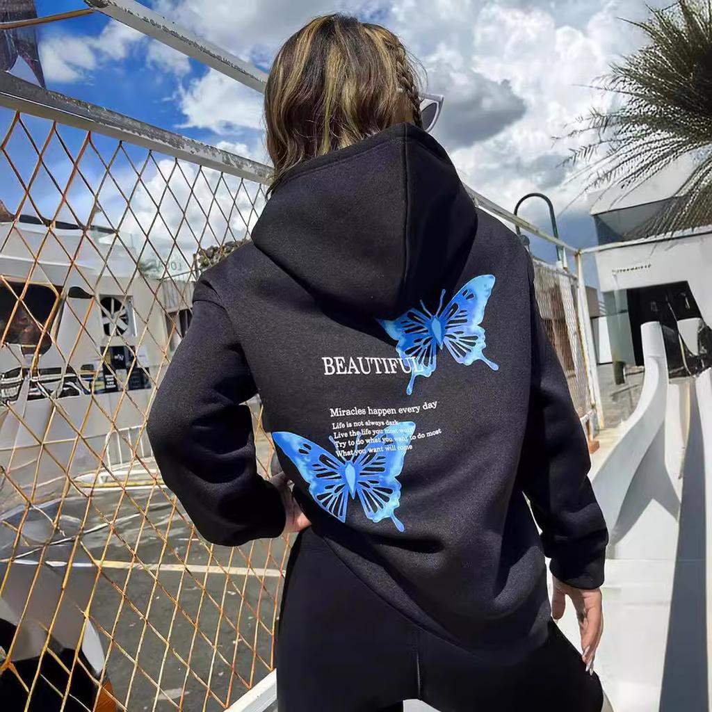 Новая популярная толстовка с открытыми плечами и принтом бабочки на спине для мужчин и женщин на весну и осень, повседневная, с длинными рукавами и капюшоном