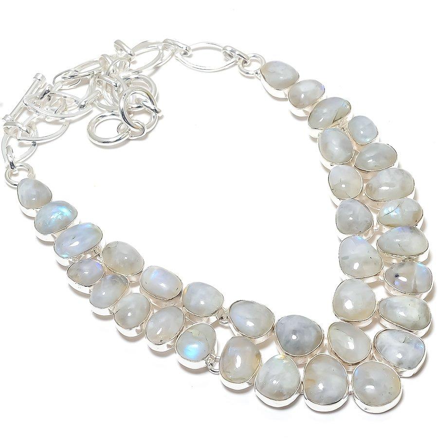 Радужный Лунный Камень Драгоценный Камень Ручной Работы 925 Серебро Ювелирное Изделие Ожерелье 18" JCN484-95