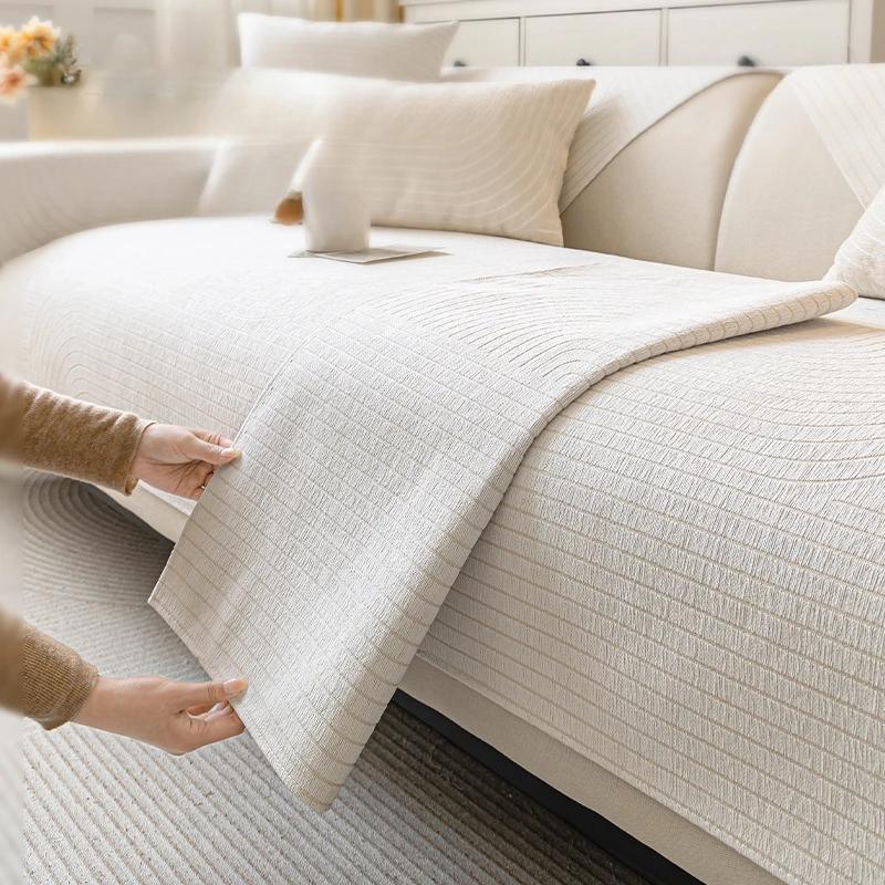 Размер диванных чехлов, которые вы выберете, должен быть на 20 ~ 30 см больше, чем фактический размер дивана. Остаточную часть можно повесить вниз, чтобы защитить боковую часть дивана или заправить под диван, чтобы предотвратить скольжение.
