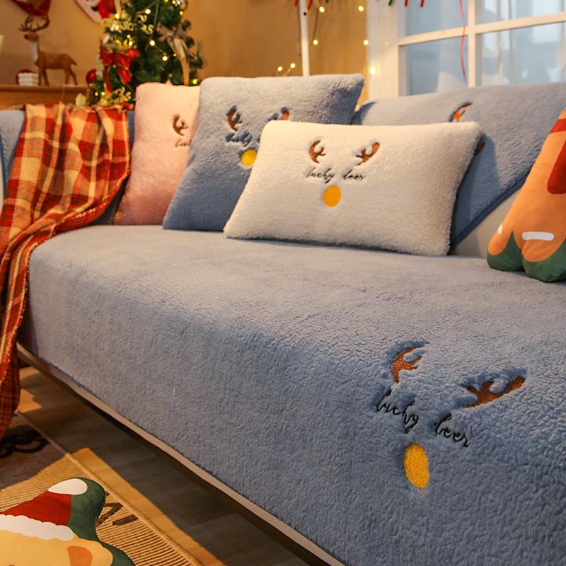 Утолщенный кашемировый чехол для дивана из ягненка, зимний нескользящий диван, полотенце, моющийся диван, подушка для дивана, декор для гостиной, Лось, Рождественский декор