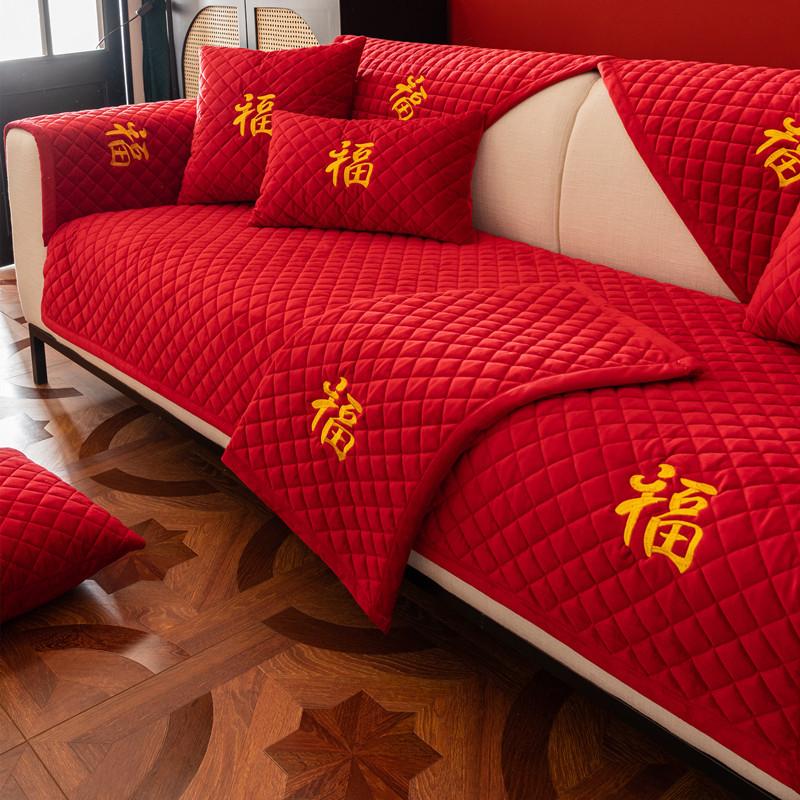 Чехлы для диванов в китайском стиле, роскошные красные плюшевые противоскользящие подушки для диванов для гостиной, универсальное кресло, чехол, полотенце