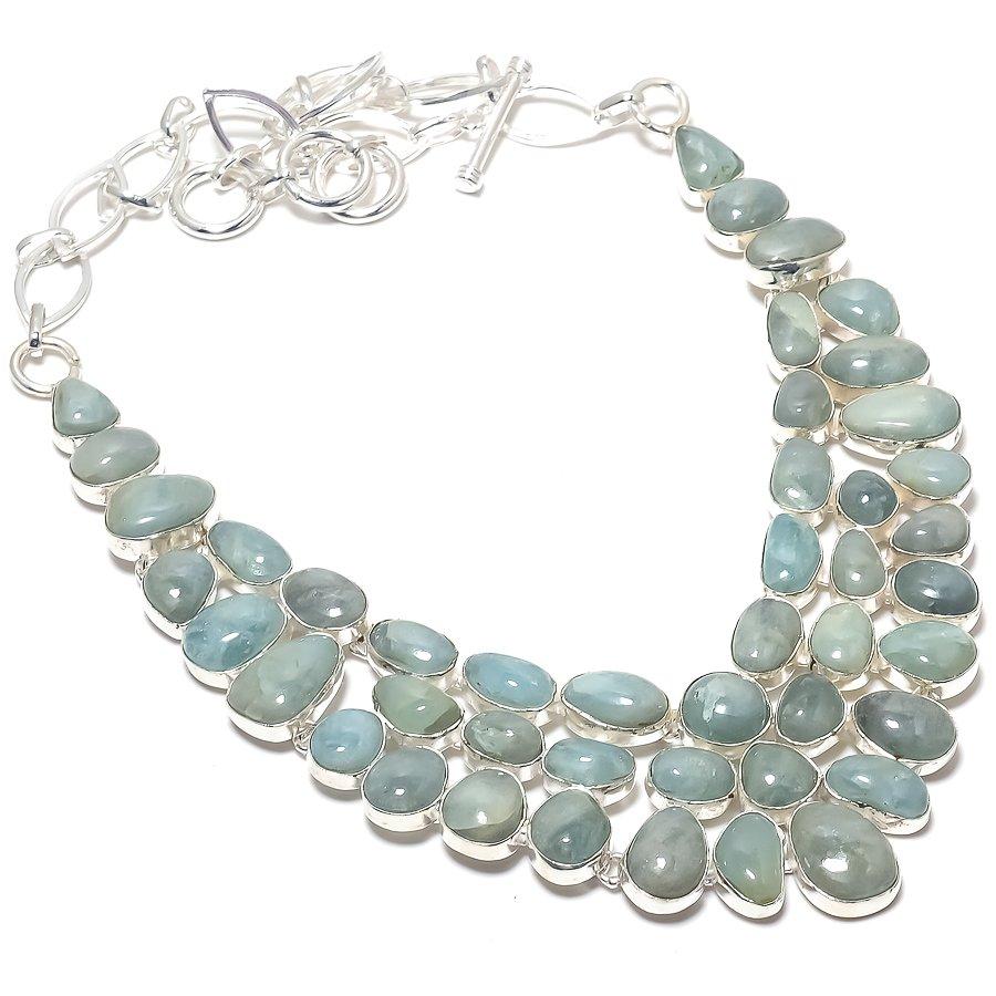 Аквамарин Драгоценный камень Ручная работа Серебро 925 пробы Ювелирное изделие Ожерелье 18" JCN484-222