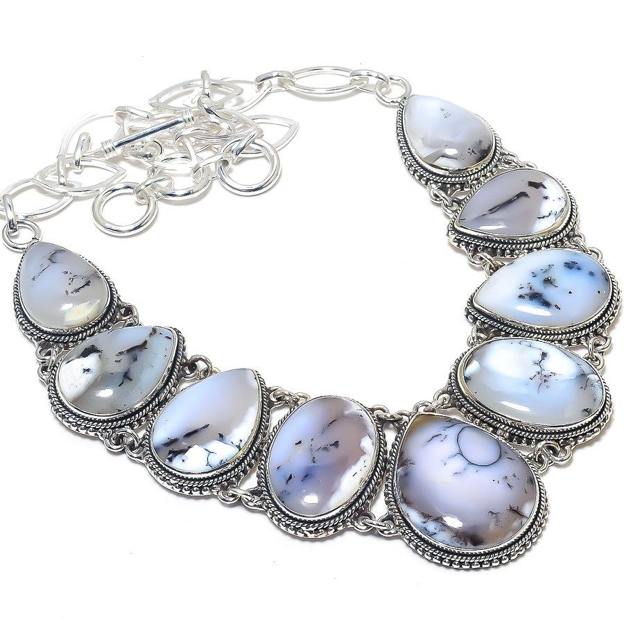 Ожерелье из серебра 925 пробы с драгоценным камнем опалом дендритом 18 дюймов JCN484-236