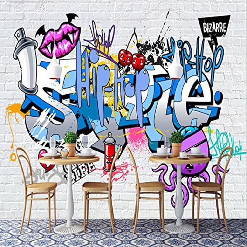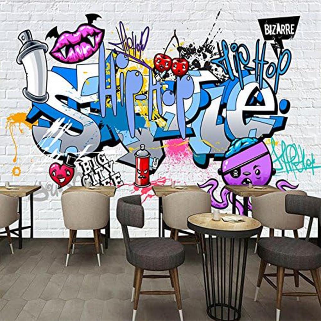 Мультфильм 3D Mural граффити Обои Уличное граффити Ручная роспись кирпичной стены Mural Спальня Гостиная Обои