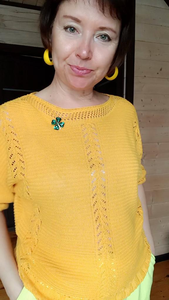 Брючки- шаровары ярко желтого, лимонного цвета, внизу и сверху , в талии- на резинке.Чуток маломерят, меньше в бёдрах на 5 - 6 см. По размеру подошли, брала с запасом в объёме, интересная ткань, рельефная, похожая на мелкую жатку, полиэстер, длина тоже хорошо подошла- при моем росте 158 ничего переделывать не пришлось. На свои параметры 106-88-108 купила размер 4 хl. Качество пошива хорошее. Но цвет не совсем совпал с промофото, чуть ярче, более лимонный оттенок, светлый.
