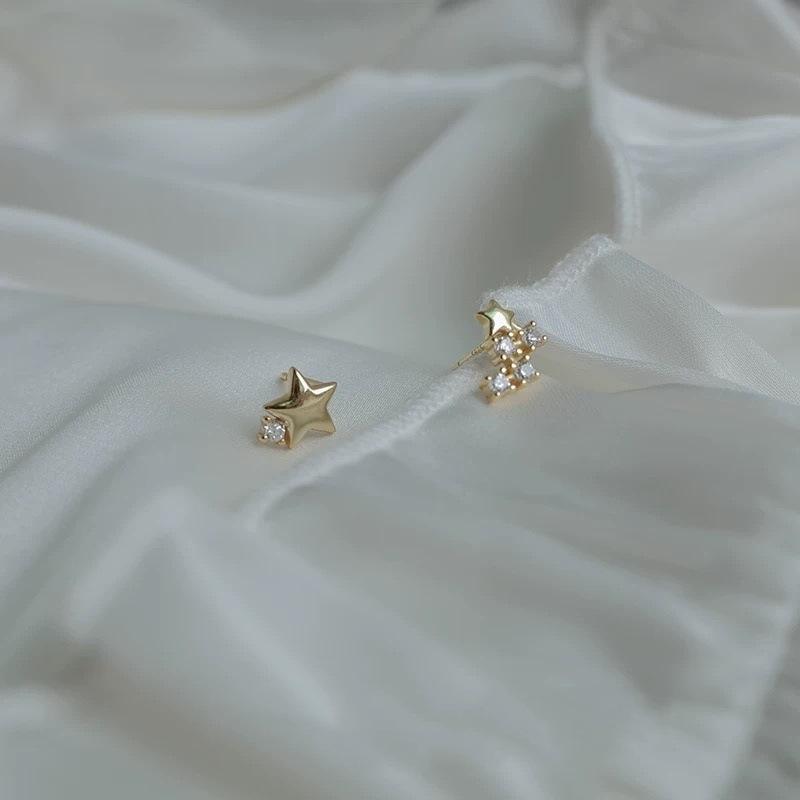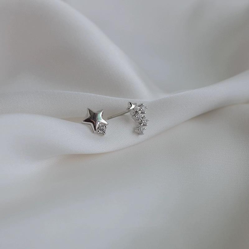 Асимметричные серьги-гвоздики в форме звезды из стерлингового серебра 925 пробы с бриллиантами в форме звезды и луны, необычный дизайн, простые дикие серьги