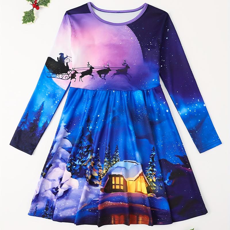 Повседневное платье для девочек с принтом 3D Snowhouse и круглым вырезом, длинными рукавами, детское платье принцессы — купить товар онлайн с бесплатной доставкой по всему миру!