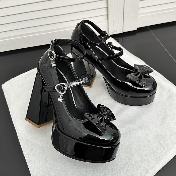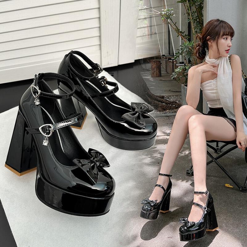 Женские туфли Мэри Джейн из лакированной кожи ярко-розового цвета с двойной пряжкой на ремешке, милые милые туфли-лодочки в стиле готической Лолиты с бантом
