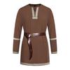 Стиль: Окунитесь в средневековое очарование этой туники унисекс в стиле викингов с классическим V-образным вырезом, длинными рукавами и сложной вышивкой на воротнике и манжетах, излучающей аутентичность и стиль.