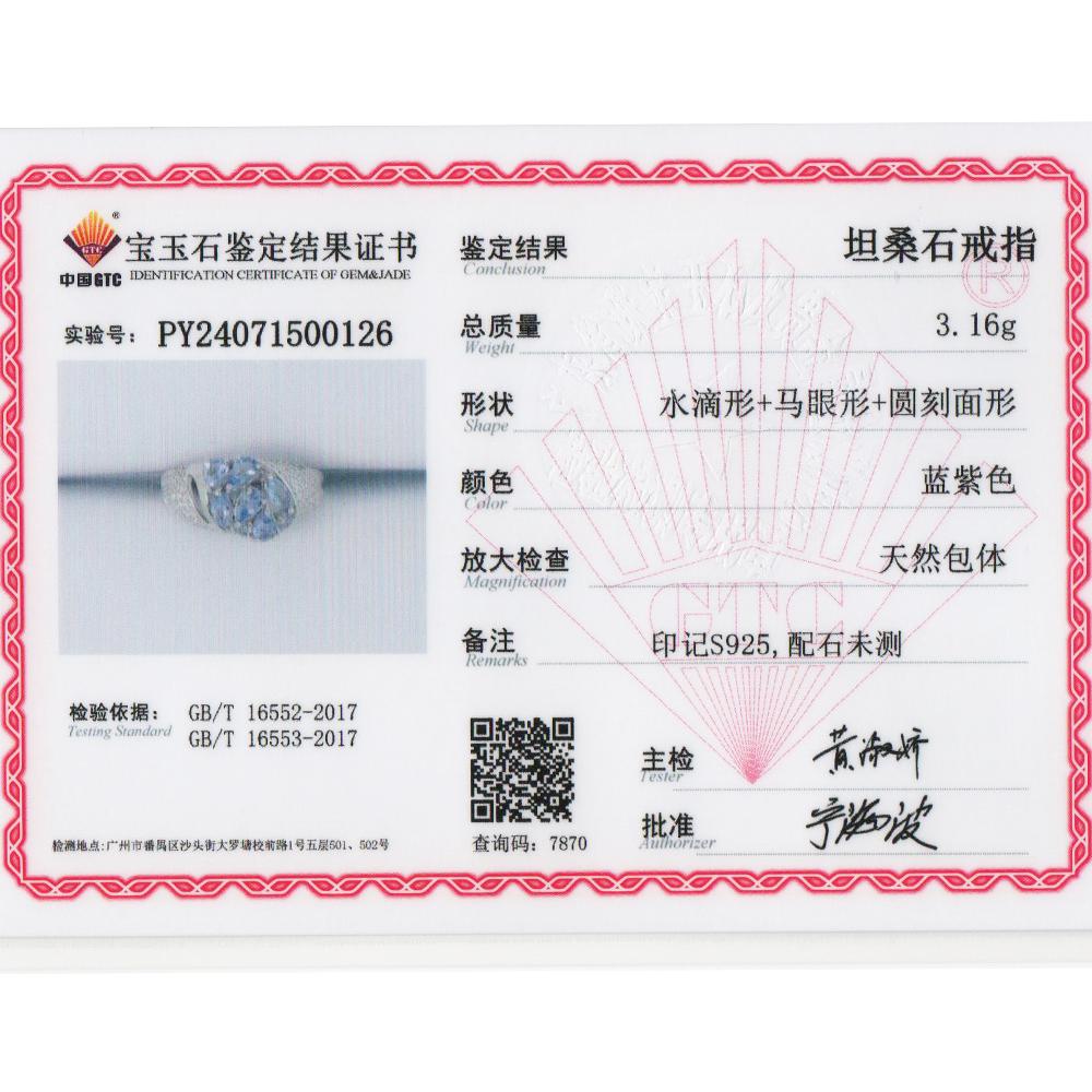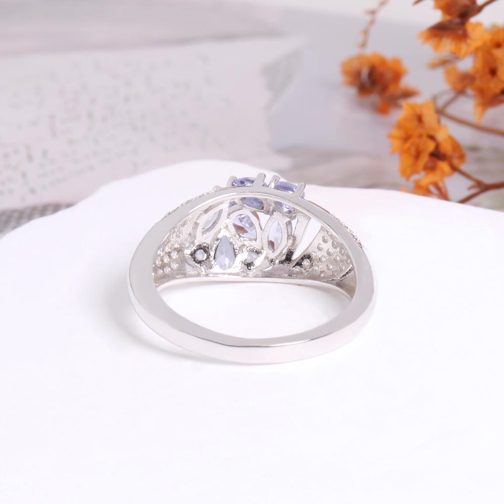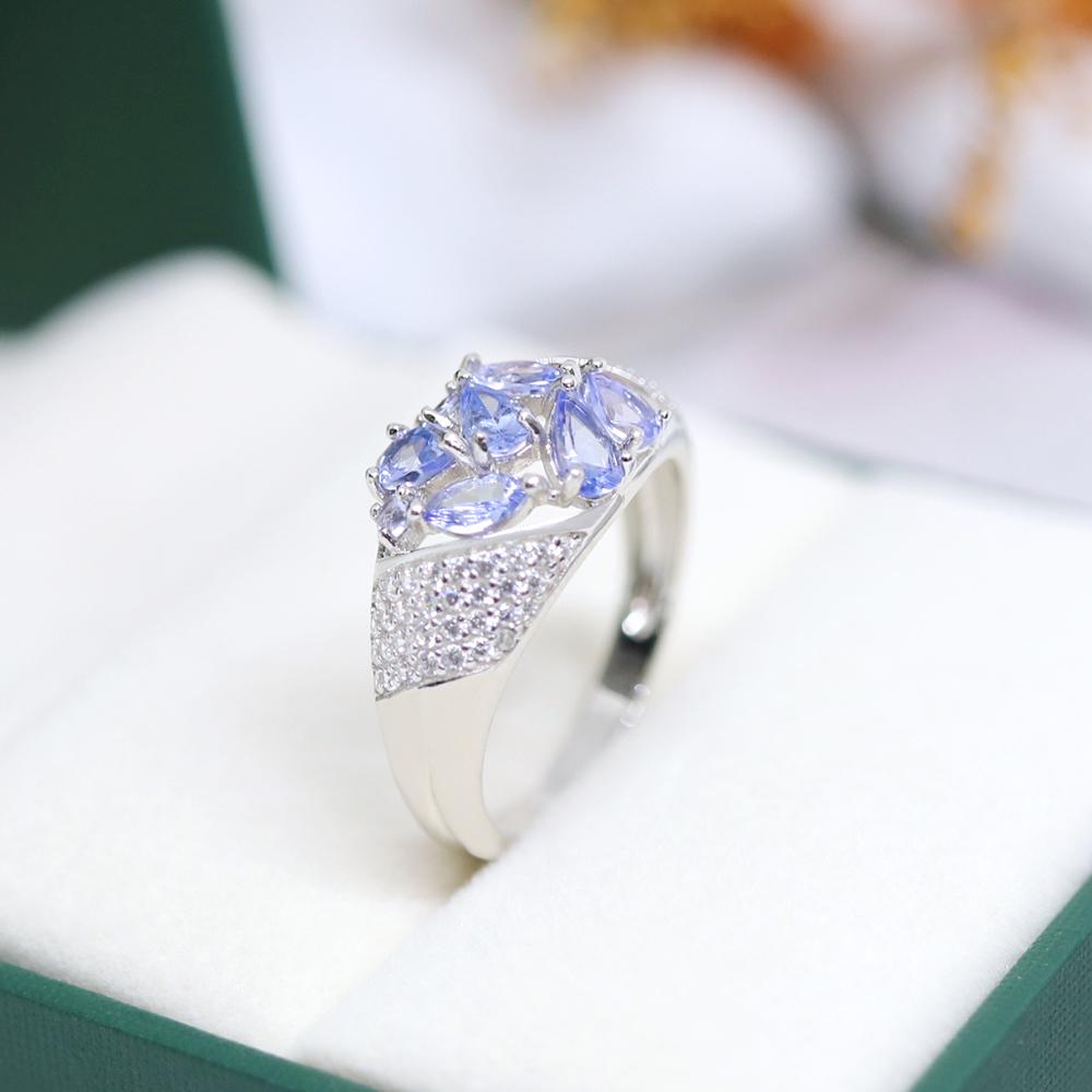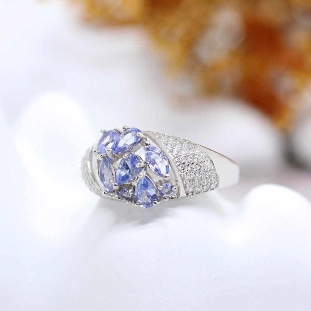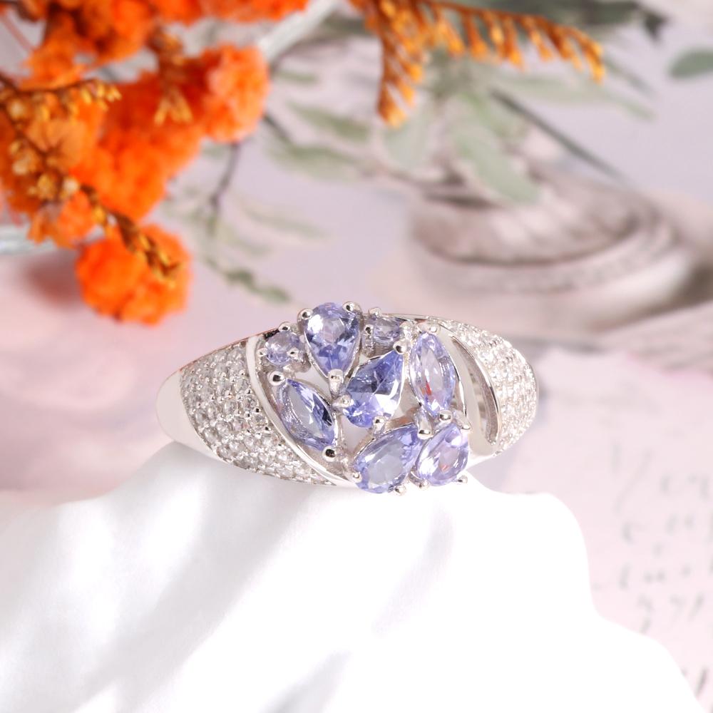 Элегантный легкий роскошный дизайн. Кольцо из серебра 925 пробы с натуральным танзанитом. Благородный драгоценный камень. Драгоценный подарок для влюбленных.