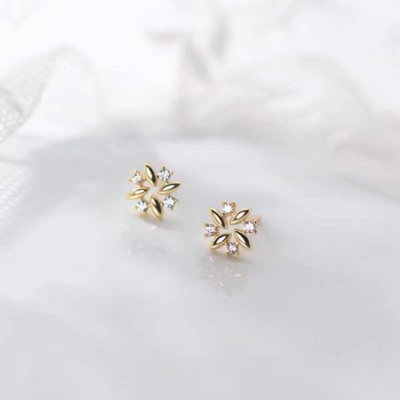 Серьги-гвоздики в стиле ветряной мельницы из стерлингового серебра S925 для женщин, изысканные и универсальные японские полые серьги с драгоценными камнями для нежных дам
