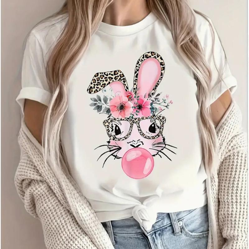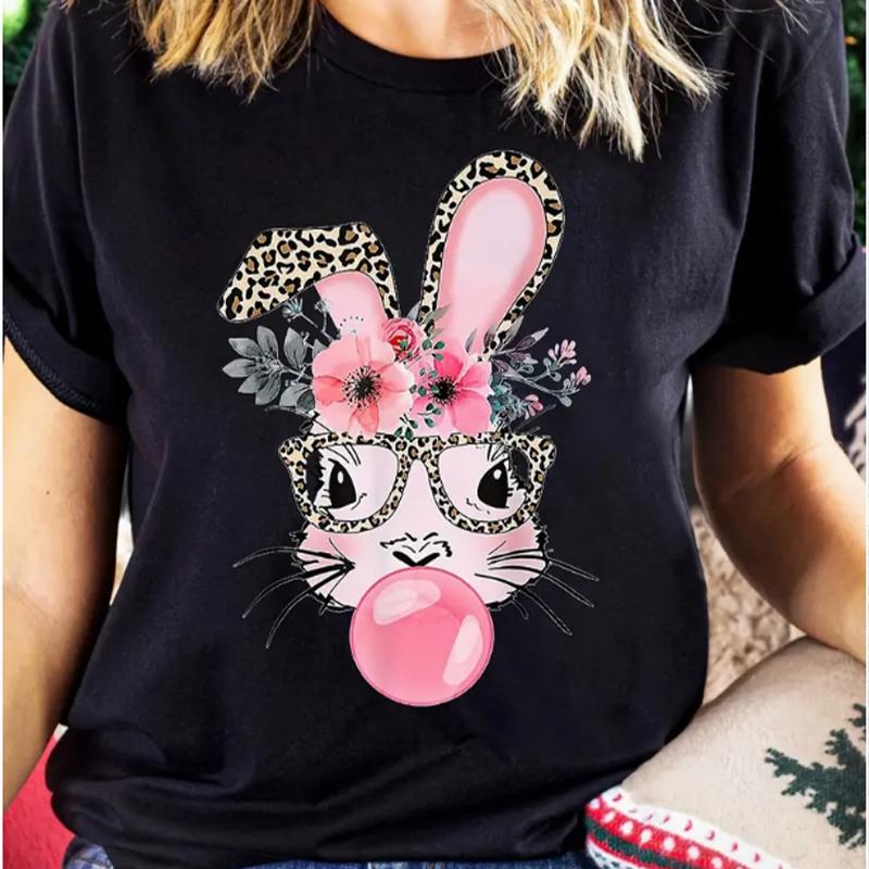 Модная женская футболка с принтом кролика в виде очков-пузырей, забавная повседневная футболка с короткими рукавами и круглым вырезом, летняя женская футболка