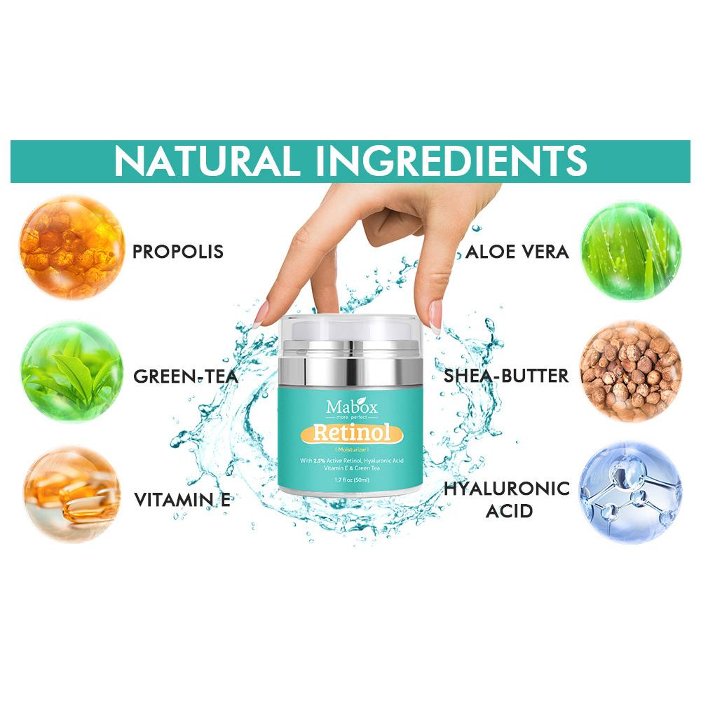 Крем с ретинолом MABOX Увлажняет кожу Увлажнение Восстанавливает жизненную силу кожи Устраняет темные круги Светло-голубая упаковка крема