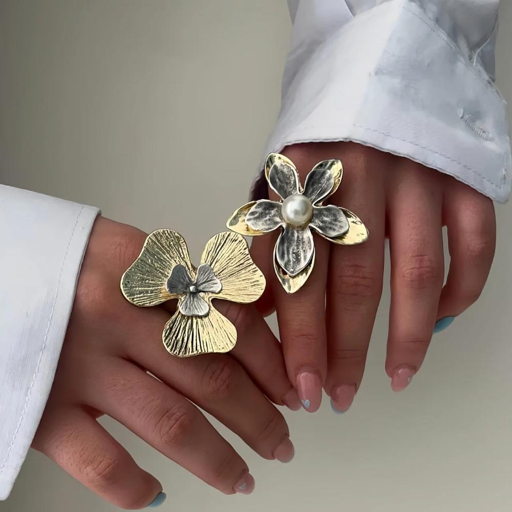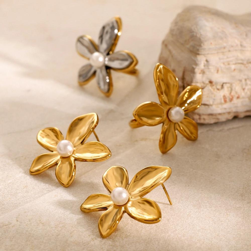 Uworld Изысканное кольцо из нержавеющей стали с цветочным жемчугом для женщин, текстурные антиаллергические серьги-гвоздики, высококачественный ювелирный подарок 2024 года