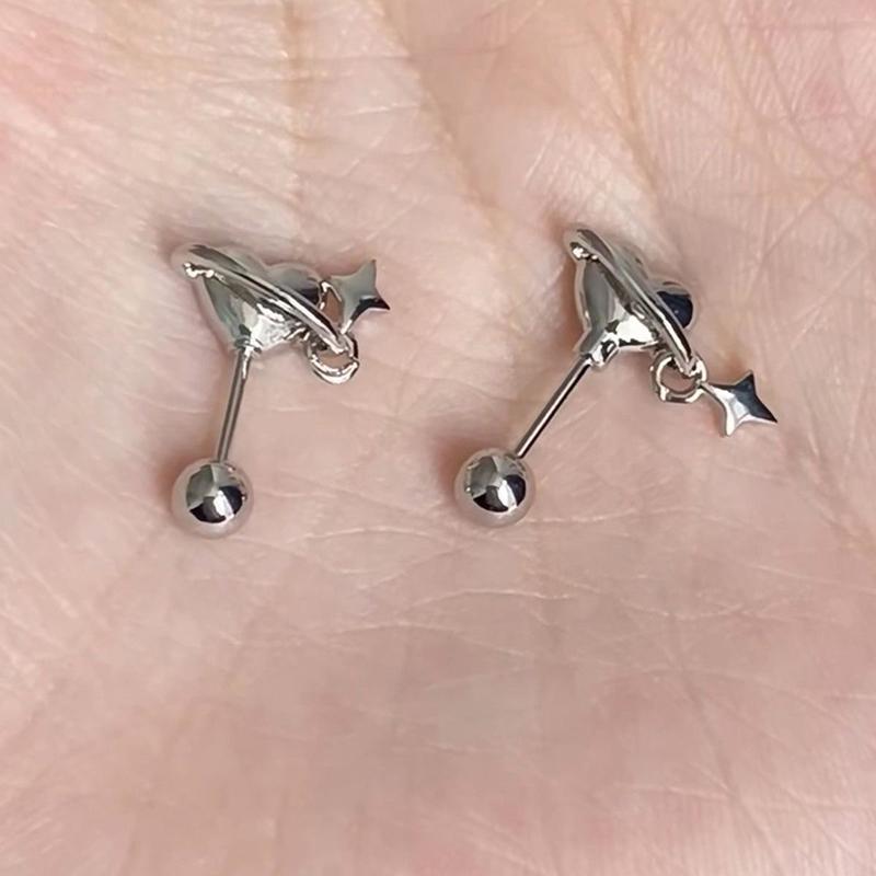 Милая серебряная гвоздь для ушной косточки Love Planet для женщин, уникальная маленькая серьга для пирсинга, кулон, ювелирные изделия, аксессуары, подарки