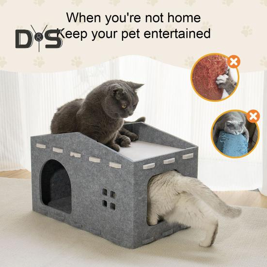 Это кошачье гнездо, изготовленное из прочного фетра, обеспечивает круглогодичное использование благодаря своей устойчивой форме, устойчивой к разрушению.. Дышащий материал создает не душный рай для домашних кошек, предлагая комфорт и безопасность в одной стильной упаковке.
