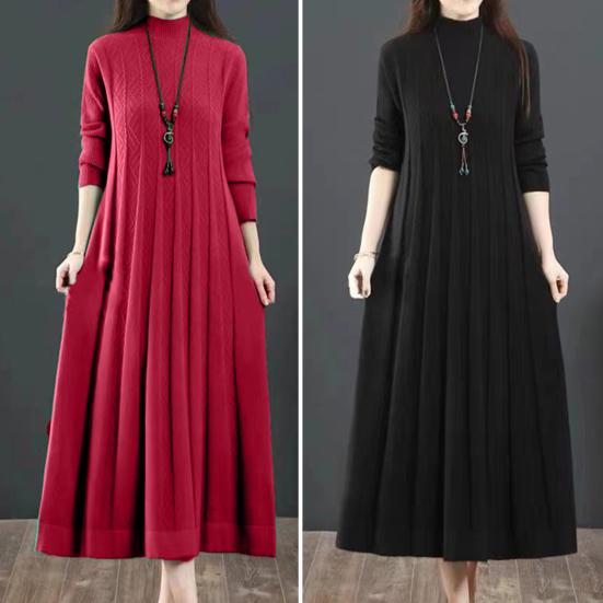 Женское осенне-зимнее трикотажное платье А-силуэта со свободным подолом, однотонное, с высоким воротником, защитой шеи, толстое, теплое, с длинными рукавами, плиссированное, длиной до середины голени, платье-миди — купить товар онлайн с бесплатной доставкой по всему миру!