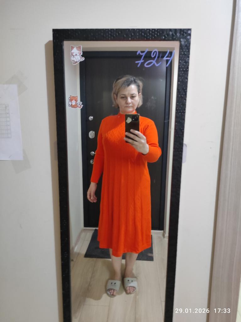 Платье понравилось Сначала. была расстроена. что. моей фигуре оно не. подходит. Но! Разгладила нижнюю. половину. платья горячим.(самая высокая температура на утюге) утюгом с паром. и еще и через мокрую ткань И платье стало более расклешенное На пояс тонкий ремешок. и красота. У кого . идеальная фигура тому и так подойдет Сзади. рисунка нет Очень жаль По. качеству поставлю самую высокую оценку Тепленькое,мягонькое. и. комфортное к телу .Я думаю катышек. не будет Очень красивый цвет :яркий. но не." ядовитый" Я. ношу 50 размер. российский. ОГ 102 ОБ1 12 Длина. платья 115(после стирки. и. глажки). Рукава. мне длинные, подвернула. Фотку не могу вставить. а. то похвасталась бы