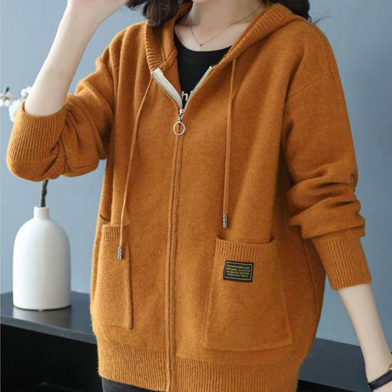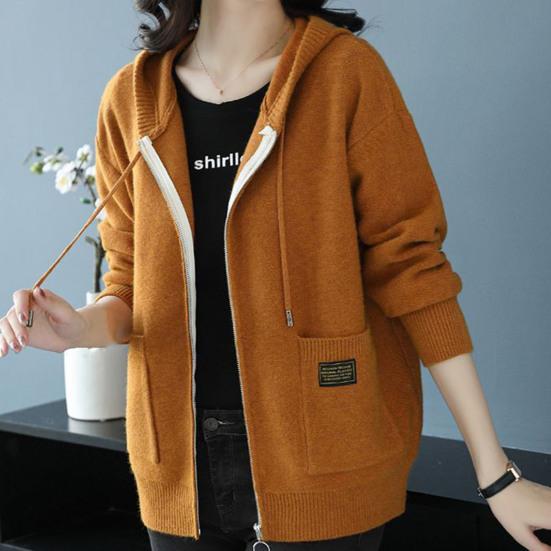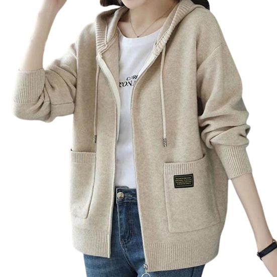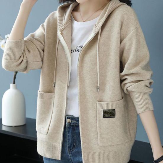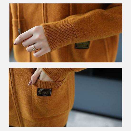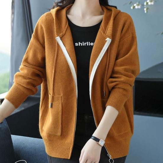 Осень-зима Женское пальто с капюшоном, завязками, трикотажное, с длинными рукавами, карманами, плотное, сохраняет тепло, чистый цвет