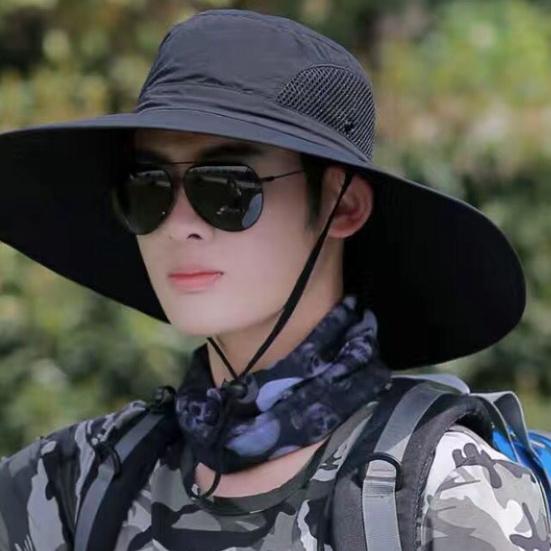 Мужская шляпа рыбака с большой полостью, защитой от ультрафиолета и солнечных лучей, с сеткой, ветрозащитным ремешком, защитой полей, быстросохнущая — купить товар онлайн с бесплатной доставкой до всему миру!